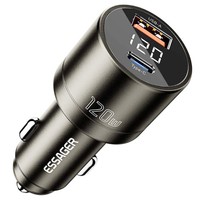 Home/ Customer Reviews/ ESSAGER 120W Car Charger, USB-A+Type-C, Digital Display, Smart Chip, Shrapnel Design - Gunmetal Grey