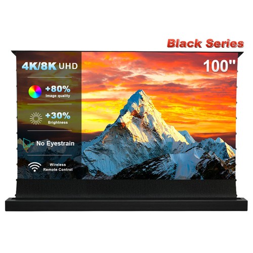 Built-in high-quality motors and silent drivers ensure smooth and quiet movement. The screen raises and retracts with a single click of the wireless remote control. Multiple height adjustments are available to suit different scenarios. Equipped with a USB sync trigger, the screen automatically raises when the projector is turned on and retracts when it's turned off, ensuring peace of mind.