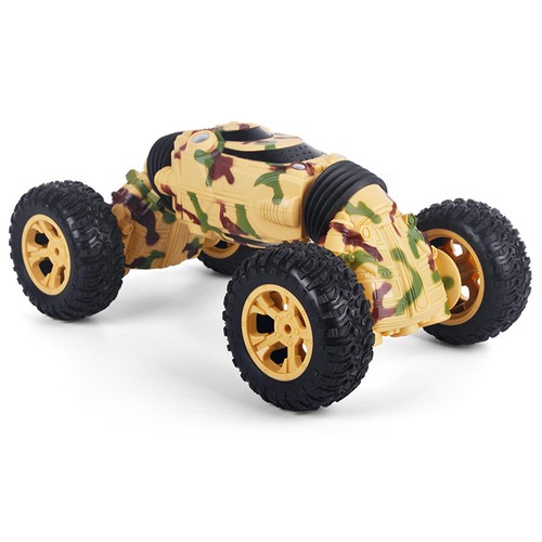 Double-sided 2.4GHz RC vehicle with powerful brushed motor, does a somersault effortlessly with four-wheel independent suspension system driving all time.