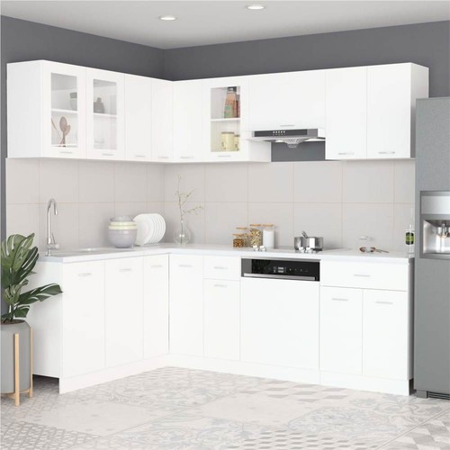 This 11-piece kitchen cabinet set, with its elegant design, optimises your kitchen space and provides ample storage space for your personal belongings! These cabinets are durable and functional, keeping your kitchen more organised. They also offer sufficient space to store bowls, plates, pots, and other kitchen appliances. The dishwasher panel features a simple design and can protect the dishwasher. Additionally, this set is easy to clean with a damp cloth. Please note: The worktop, faucet, sink and electric appliances are not included in the delivery.