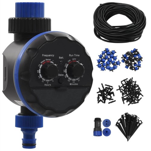 This outdoor automatic drip watering kit has everything you need to get started with drip irrigation for crops, flowers, plants, and more.The automatic garden water timer allows you to water your garden regularly at your desired time. During summers, plants and grass need frequent watering. With an automatic watering system, the garden water timer can save water and your time. It is easy to set up with two dial wheels: one for cycle time and one for watering time. With its time delay feature, you can allow the irrigation time to begin at any time you want.Additionally, the watering kit is equipped with barbed tees, elbows & connectors to make the necessary adjustments and customise your system. It also includes adjustable drippers for precision watering.The drip watering system saves more water than traditional sprinklers, as it directs water directly to the root and waters your plants without leaving the tap running.