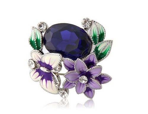 Blue crystal decorated flower brooch