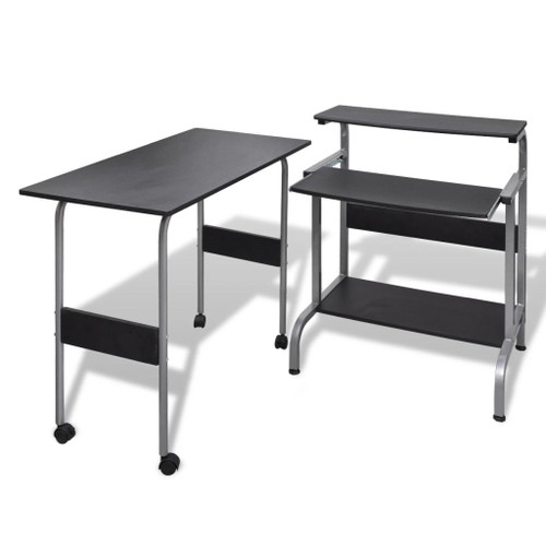This compact computer desk comes complete with a writing desk, providing enough space for you. Ideal to be used as a work-station, it will surely increase workflow efficiency. The computer desk has 3 shelves, on which your LCD monitor, keyboard and CPU tower could be placed. The writing table offers you additional organization and work space. The writing desk could also be assembled into the computer desk to form a new confirguration! The installed castors are designed for convenient mobility for the writing desk. Constructed of stable particle board and powder-coated steel frame, this desk will surely bring you years of service.