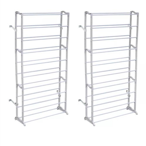 These shoe racks are made of white plastic with metal struts, suitable for 40 pairs of shoes. There are 10 ‘floors’ to order all of your shoes. It has a compact size with perfectly small partitions. This construction can easily be assembled without any tools.