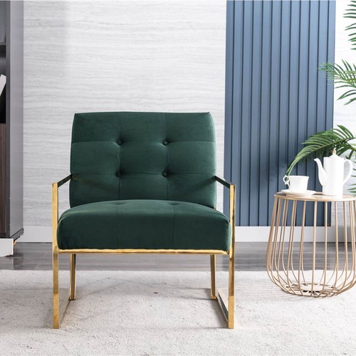 Featuring a streamlined profile with sleek rounded corners comes with stain-resistant performance velvet upholstery and a gold stainless steel frame.