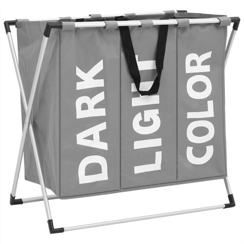 This handy 3-section laundry sorter features a lovely retro style, perfect for your home. It is an ideal choice for keeping things organised. This laundry basket is made of oxford fabric and strong aluminium, sturdy and stable. There are 3 compartments for pre-sorting light, dark and coloured laundry, making it easier to separate your clothes according to colour. Each compartment has enough space to store your clothes and keep room neat. It is equipped with a carry handle, making it easy to move around without much effort. Additionally, you can fold the basket to save storage when not in use.
