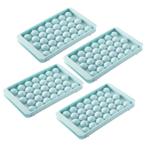 4 Pack 33-Cavity Plastic Round Ice Ball Mold, for Making Frozen Whiskey Balls, Popsicles, and Lollipops - Blue