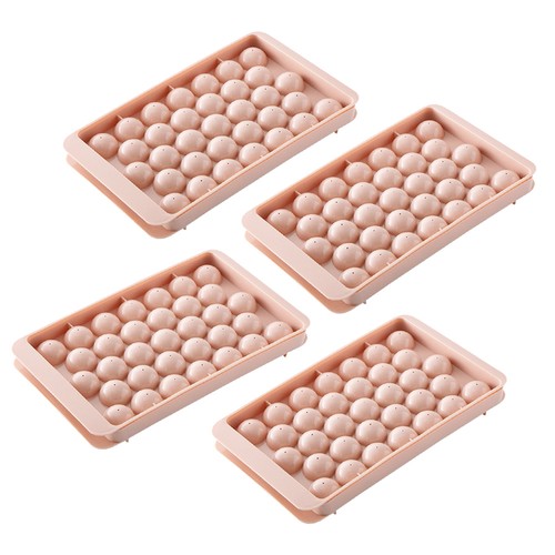 4 Pack 33-Cavity Plastic Round Ice Ball Mold, for Making Frozen Whiskey Balls, Popsicles, and Lollipops - Pink