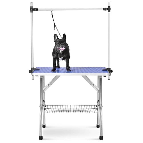 36" Foldable Dog Grooming Table Heavy Duty Stainless Steel With Adjustable Arm for Pet - Blue