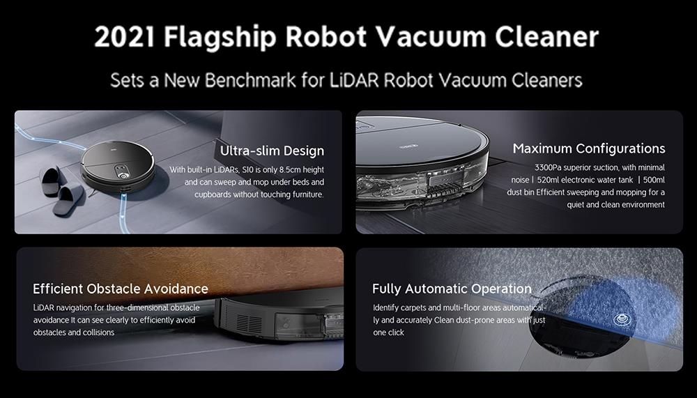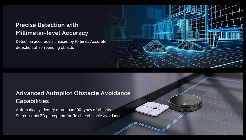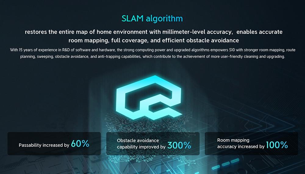 Its LiDAR sensors use a cutting-edge technology known as dToF - or Direct-Time-of-Flight - to shoot light pulses as it cleans your home. Compared to traditional LDS technology, the S10 offers 4X accuracy when recognizing objects, and 30% faster positioning.
