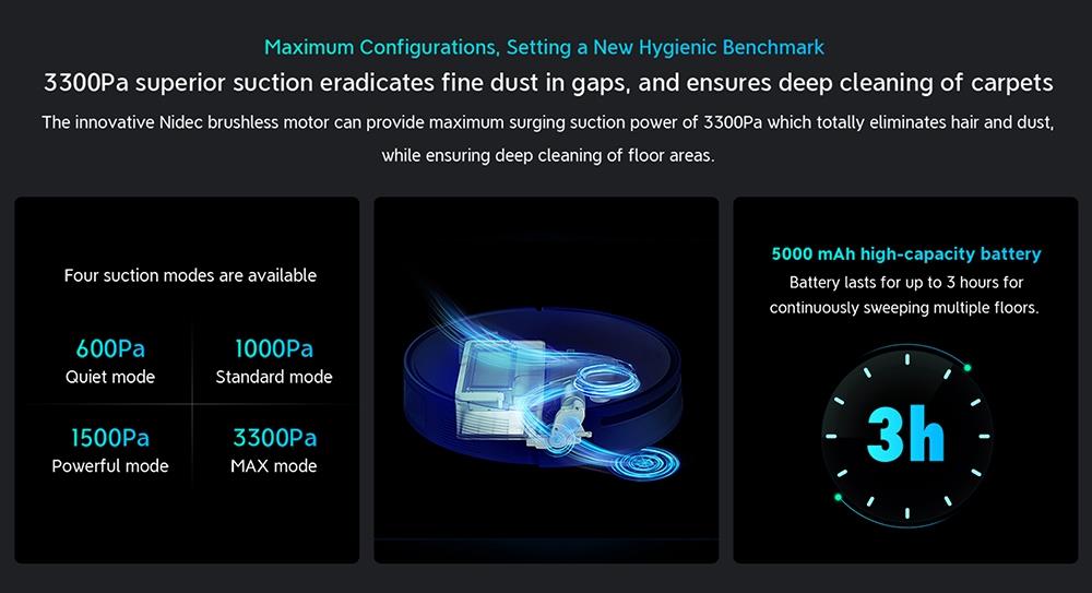 3300Pa Max Suction Power