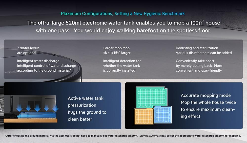 520ml smart water tank - the largest of any robot vacuum on the market