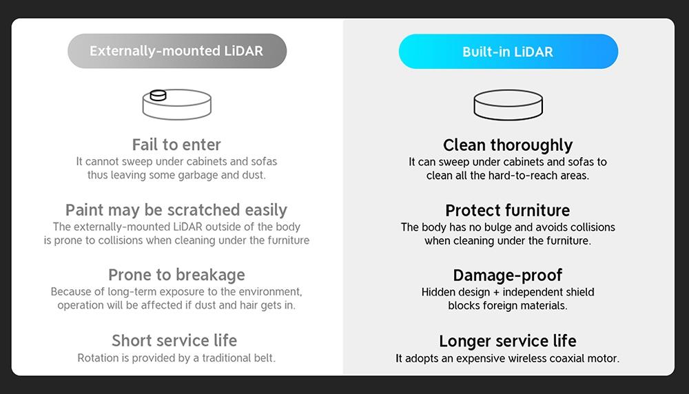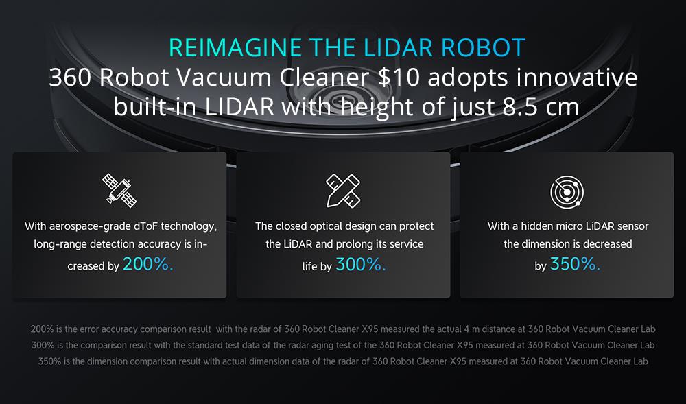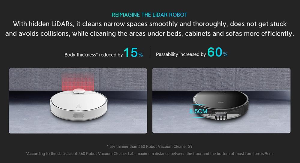 The S10's LiDAR sensors are inside the body, making the 360 S10 ultra-slim, and ahead of the curve, so there's no bulky sensor bumping into your furniture.