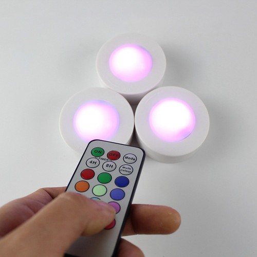 | Specification | Size: 60 x 30mm Light Color: RGB 13 colors Power: 1W Lumens: 50lm (Max.) Lamp Battery: 3 x AAA battery (Not included) Remote Control Battery: 1 x CR2025 battery (Built-in) Remote Control Distance: 1.6-21ft |