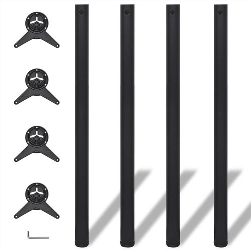 This set includes 4 high-quality table legs which can be used as replacement legs for breakfast bars, tables, worktops, desks, etc. Made of high-quality materials, these table legs are very sturdy and stable. Thanks to the adjustable screw feet, the height of the table legs can be adjusted to compensate for uneven floors. Assembly is very simple and fast.