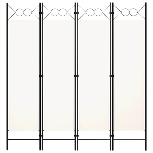 Our freestanding and practical 4-panel room divider can be used as a partition, privacy screen or for decoration. It provides ideal privacy in the bedroom or a compartment of the room. Top with circle design adds extra elegance. This room divider, made of powder-coated iron frame and fabric screens, can be easily folded when not in use. Note: The fabric does not block all light completely.