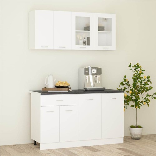 This 4-piece kitchen cabinet set, with its elegant design, optimises your kitchen space and provides ample storage space for your personal belongings! These cabinets are durable and functional, keeping your kitchen more organised. They also offer sufficient space to store bowls, plates, pots, and other kitchen appliances. The included worktops are sturdy and ensure long-lasting service. Additionally, this set is easy to clean with a damp cloth. Please note: The faucet, sink and electric appliances are not included in the delivery.