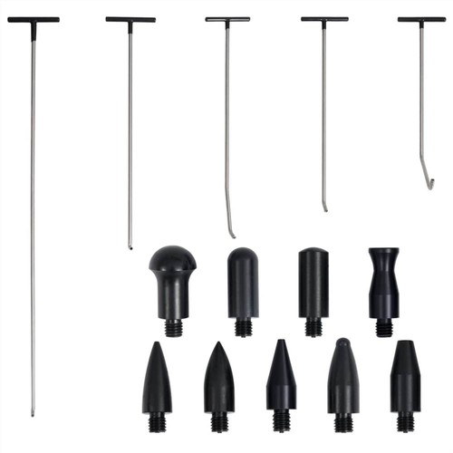 Our user-friendly paintless dent repair set removes dings and dents in your vehicle without damaging the paint job. Using this paintless dent repair tool set does not damage your car like other methods. Dents are removed from the backside of the panel so you don't have to sand, use paint fillers (body putty), or repaint. No panels will need replacement or painting, saving you the hassle of blending just the right paint colour to match the adjacent panels. Paintless dent removal is a delicate process and always demands the best tools. So, this set is a great choice! This set includes 5 paintless dent repair rods in different sizes and 9 replacement tips.