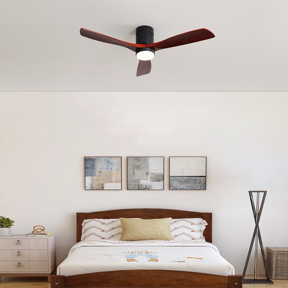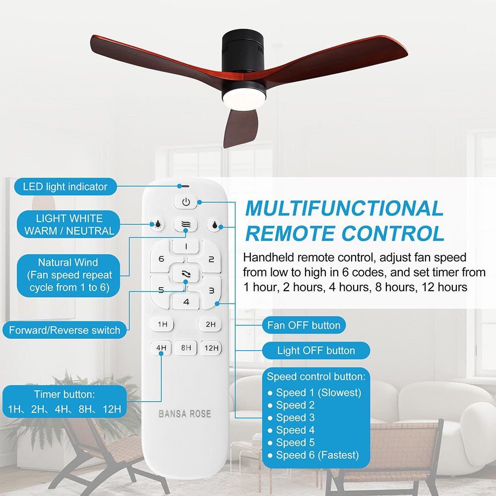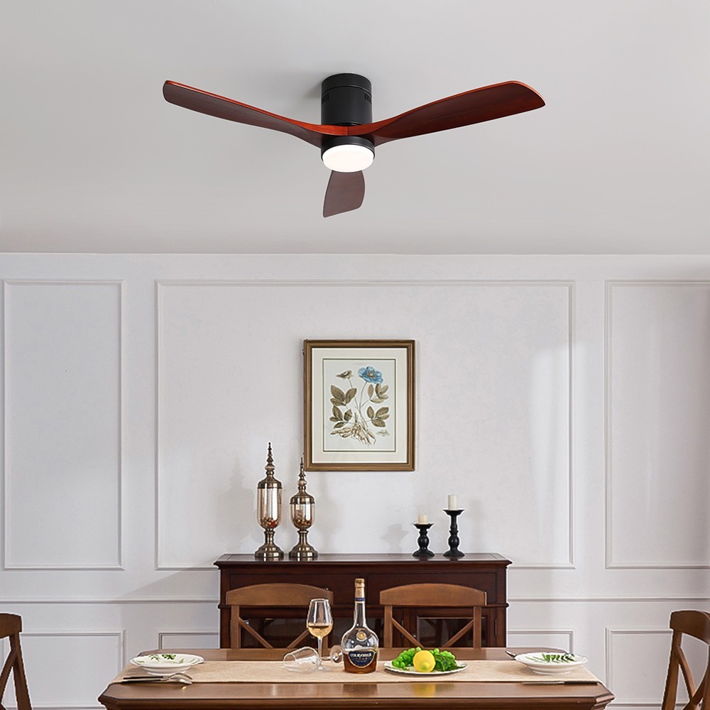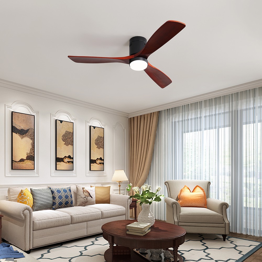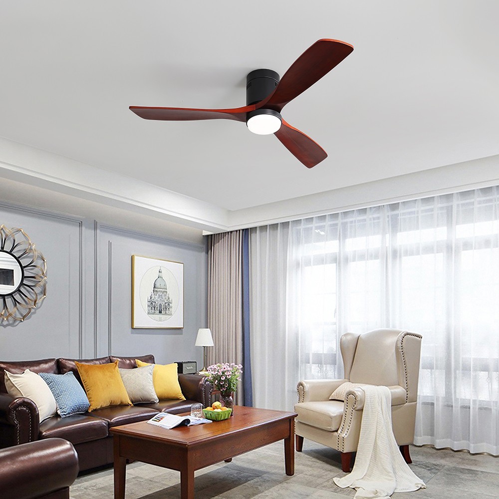 | Specification | Main Color: matte black (painted) Motor Size: DC153*12 Overall Diameter: 52 inches Hanging Rods: No Bulb: LED 15W (three-color dimmer with memory) Switch: remote control Number of Fan Blades: 3 Fan Blade Size: 640mm Fan Blade Material: solid wood Fan Blade Color: mahogany color Motor RPM: 180 Voltage/Frequency: 120V/60HZ Motor Power: 28W |