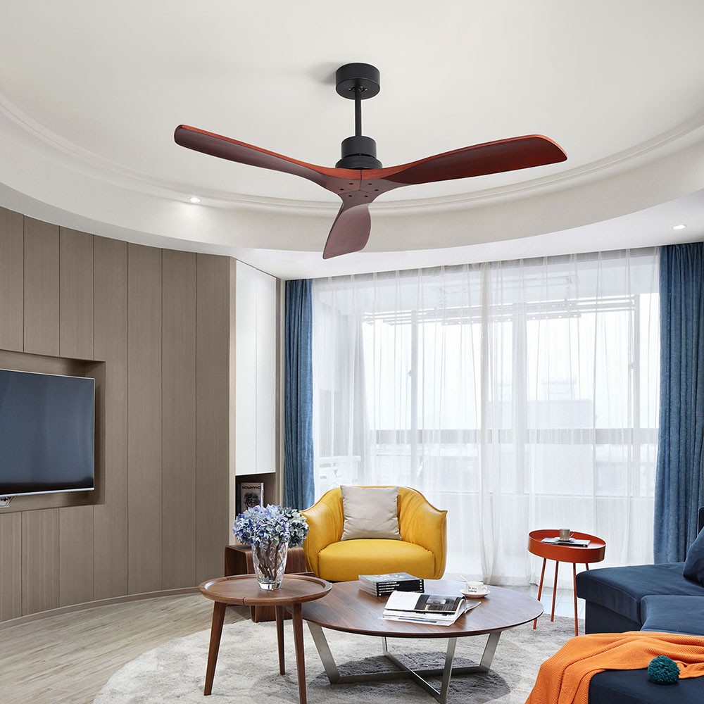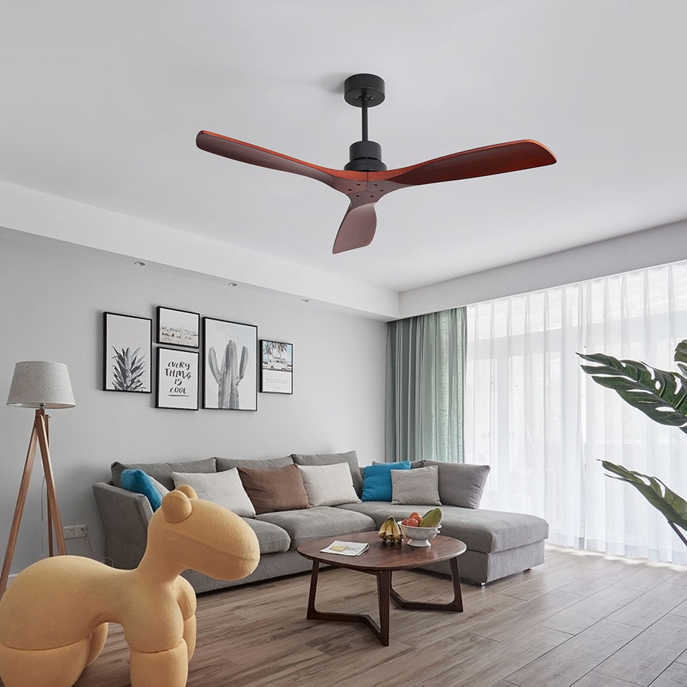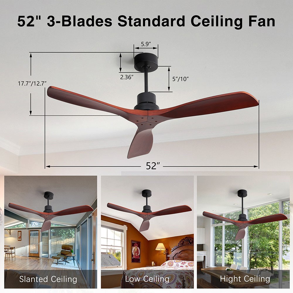 Use this 52-inch wide standard ceiling fan to make a statement in your large living room. It has passed the ETL safety certification to ensure the safe use of the fan. The fan is made with a metal frame and features 3 matching solid wood blades with a unique texture.