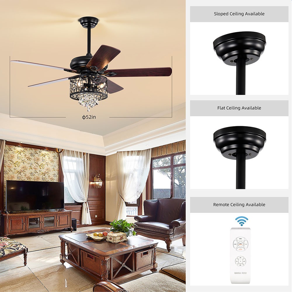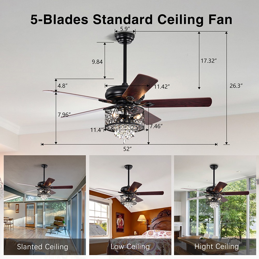 | Package Contents | 1 x Crystal Ceiling Fan 1 x Remote Control (Battery Not Included) 1 x User Manual |