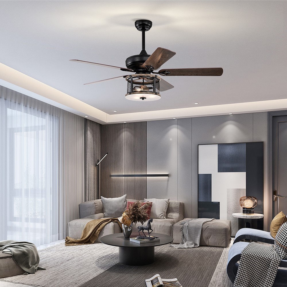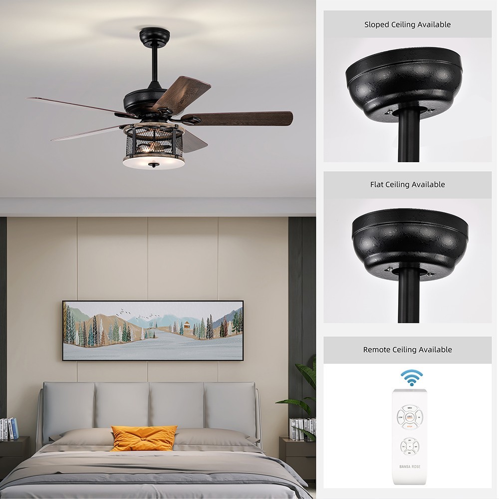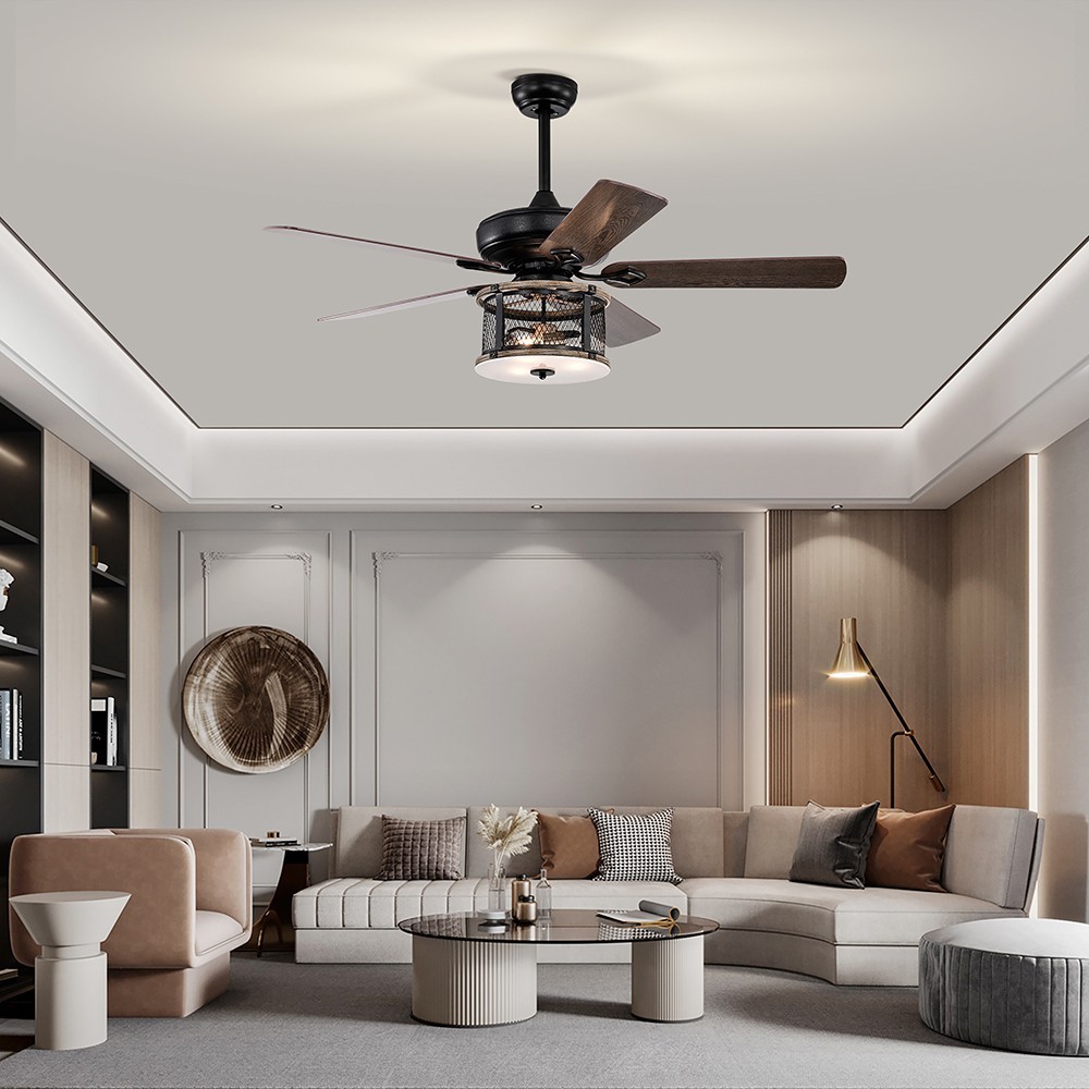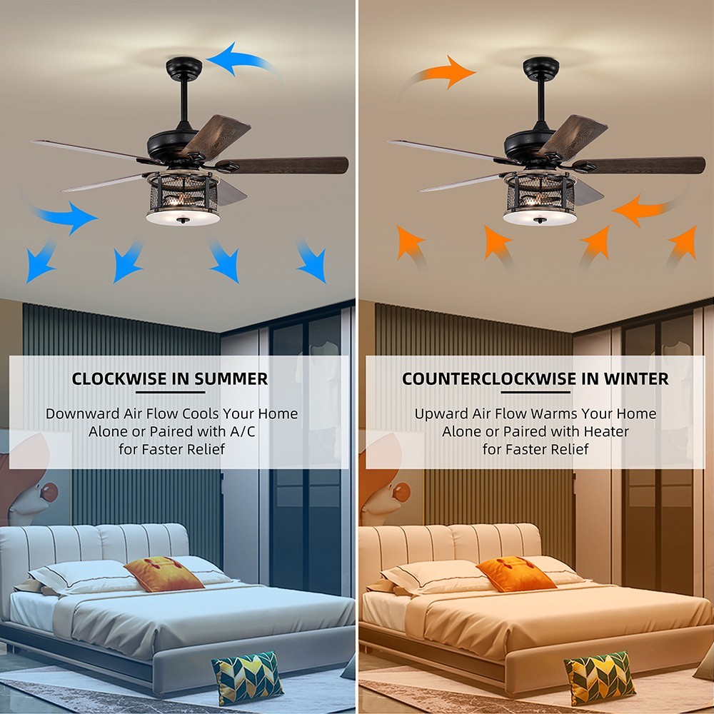 | Specification | Motor size: MT153*15 Overall diameter: 52 inch Hanging rod length: Ø26*125+250 Bulb: 3*E12*MAX 40W (Not included) Switch: Remote Control Number of fan blades: 5pcs Fan blade size: L520*138*T5.4mm Fan blade material: PLY Fan blade color: silver on both sides Motor speed: 175RPM Voltage: 120V 60HZ Motor power: 65W |