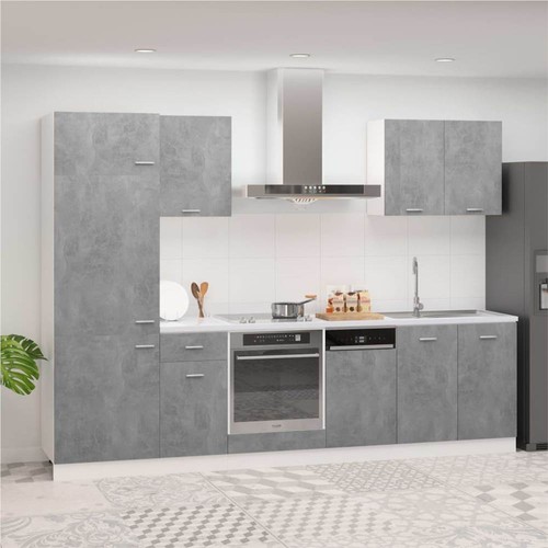 This 7-piece kitchen cabinet set, with its elegant design, optimises your kitchen space and provides ample storage space for your personal belongings! These cabinets are durable and functional, keeping your kitchen more organised. They also offer sufficient space to store bowls, plates, pots, and other kitchen appliances. The dishwasher panel features a simple design and can protect the dishwasher. Additionally, this set is easy to clean with a damp cloth. Please note: The worktop, faucet, sink and electric appliances are not included in the delivery.