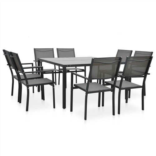 Our dining furniture set, with a stylish design, is a perfect choice for your outdoor living space. The simple elegance of this dining set is meant to make everyday dinners special. This garden dining set features a powder-coated steel frame, making the table and chairs stable and durable. The comfortable dining chairs are upholstered in strong and easy-to-clean textilene fabric. The chairs are also stackable to save space when not in use. This set is easy to assemble.