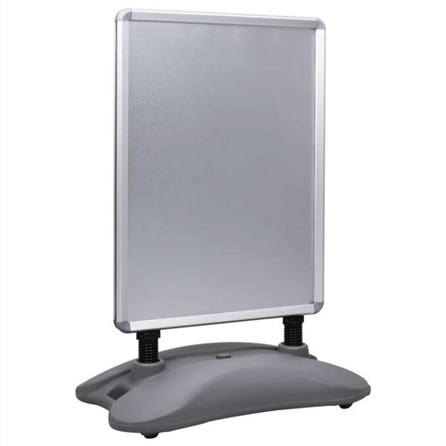 If you are looking for a poster stand for your products or services adversiting and promotion, here our water-based poster holder comes to help! Made of the aluminium frame, which is durable and lightweight. The heavy-duty plastic base can be filled with water or sand to create a weighted and stable footing, and the spring-loaded design ensures that your sign will withstand the highest winds. Your posters will remain fully protected behind the galvanised sheet on each side of the sign, keeping your posters in top condition whilst on display. Dual-side with PVC film protects from dirt that is easy to maintain. In addition, the click system helps quickly install and remove the poster. This waterbase poster stand is easy to assemble.