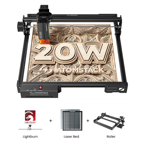 The ATOMSTACK A20 Pro V2 laser engraver features an advanced, independently developed motherboard for enhanced power, intelligence, and stability. Unique dot compression technology delivers 0.08 x 0.1mm dots, which ensures precise engraving. Laser Output Power Level: 20000mW, The Laser Class: 4.