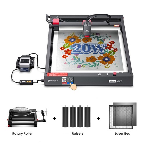 | Package Contents | 1 x Rear Panel Assembly 1 x X-Axis Assembly 1 x 20W Laser Module 1 x AlgoLaser Air Pump(AAP 1.0) 1 x Power Adapter 1 x Power Cable 1 x Laser Goggle 1 x Left Y-Axis Assembly 1 x Right Y-Axis Assembly 1 x Front Assembly 1 x User Manual 1 x Laser Bed 1 x Rotary Roller 4 x Raisers |