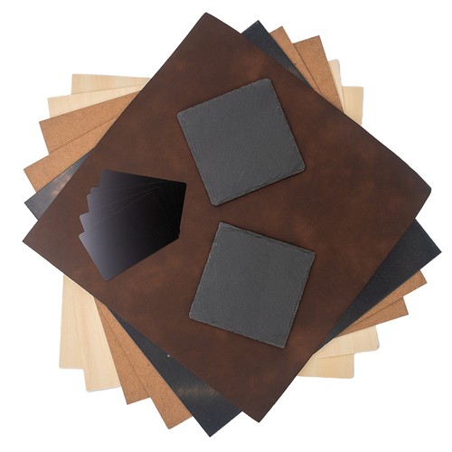 | Package Contents | 2 x Basswood Plywood (300×300×3mm) 2 x Slate Coasters (100×100×5mm) 5 x Anodized Aluminum Cards (86×54×0.2mm) 1 x Laserable Leatherette (300×300×0.9mm) 1 x Black Acrylic (300×300×3mm) 2 x MDF Board (300×300×3mm) |