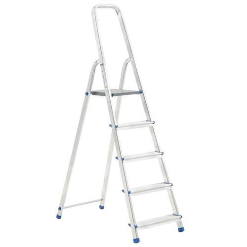 This lightweight 5-step ladder is perfect for cleaning, painting, picking, or decorating around your house and shop. This ladder is finished with premium aluminium tubes, wide pedals with grooves and non-slip feet at the bottom, making you feel safe and secure during use. It can hold a maximum weight of 150 kg. This compact step ladder can be folded easily and hidden away in corner space.