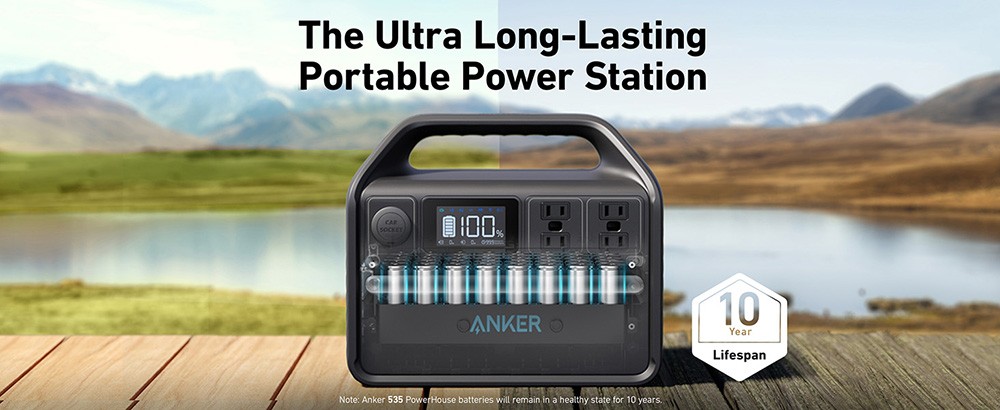 With proprietary long-lasting technology InfiniPower™, combined with LiFePO4 batteries, ultra-durable electronic components, a smart temperature control system that monitors temperature up to 100 times per second, and an impact-resistant structural design, Anker 535 portable power station is built to last over a decade, even with everyday use.