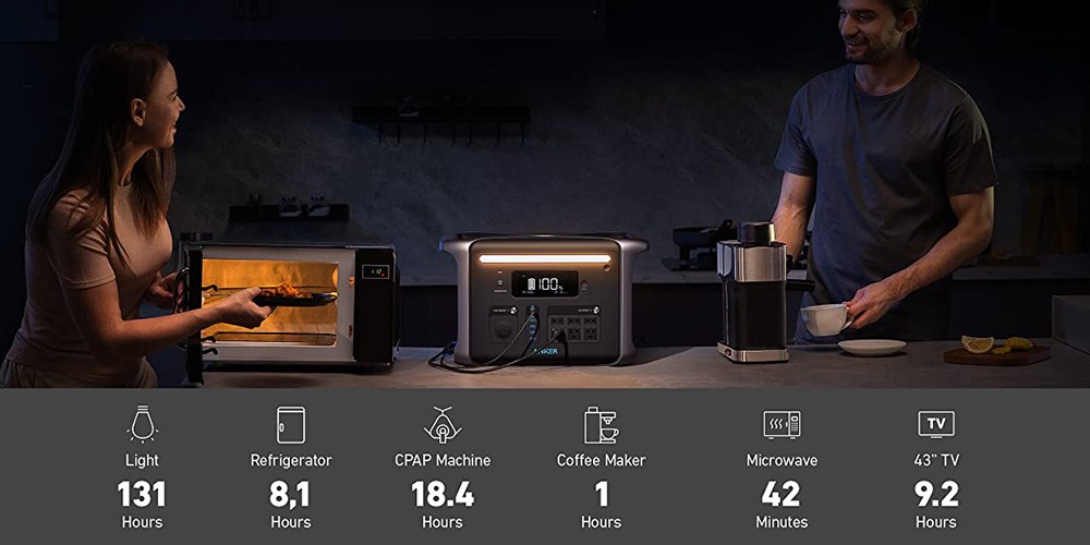 With a 1229Wh capacity and 1500W AC output, Anker PowerHouse 757 is an ideal solution to power all your essential devices and appliances during a trip, such as an electric grill, coffee maker, refrigerator, and more.