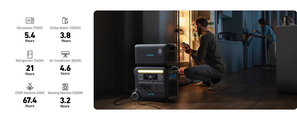 Use the 2048Wh 760 expansion battery with Anker PowerHouse 767 (2048Wh) and scale up the battery capacity to 4096Wh.