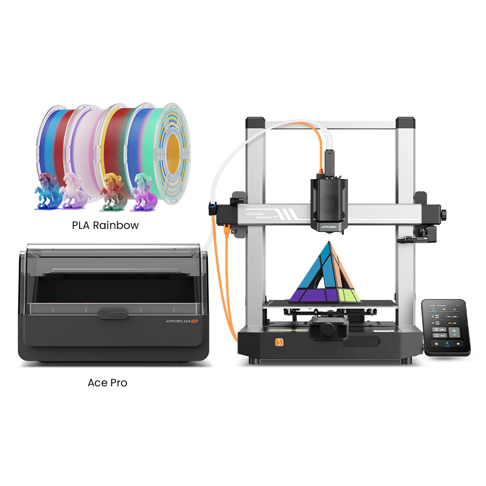 | Package Contents | 1 x Kobra 3 Printer 1 x ANYCUBIC Color Engine Pro (ACE Pro) 1 x Printhead 1 x Touch Screen 1 x Spool Holder 1 x Cable Holder 1 x Purge Wiper 1 x Bag NO.1 M2*14(2pcs) 1 x Bag NO.2 M3*6(4pcs) 1 x Bag NO.3 M4*16(2pcs) 1 x Bag NO.4 M310(1pcs),M38(1pcs) 1 x U-DISK 2 x Power Cord 1 x Signal Cable 4 x Cable Organizer 4 x Filament Tube for ACE Pro 1 x Filament Tube for Kobra 3 1 x Wrench (1 set) 1 x 4.0/3.0/2.5/2.0/1.5 Allen Wrench 1 x Filament 1 x Nozzle Cleaner 1 x Grease 1 x Camera Assembly 4 x PLA Rainbow Filament |