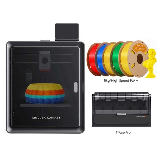 The ANYCUBIC KOBRA S1 Combo (S1C) 3D printer is a fully enclosed CoreXY model known for its high print speeds of up to 600mm/s and quality multicolor printing capabilities, all at an affordable price point. With a spacious build volume of 250 x 250 x 250mm, users can easily tackle a variety of projects. The printer's 320℃ full metal hotend supports a wide range of filament types, such as PLA, ABS, PETG, ASA, and TPU, providing users with flexibility for their projects.The user-friendly touch screen interface and intuitive software make it suitable for users of all experience levels. Its sturdy frame ensures stability during printing, resulting in consistently precise prints. Overall, the ANYCUBIC KOBRA S1 Combo 3D printer is a reliable and efficient tool for creating detailed and intricate 3D prints, making it a great choice for hobbyists, makers, and professionals.