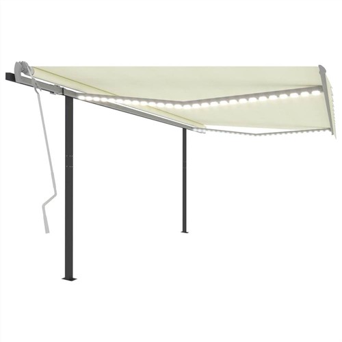Create a lovely and cool place on your patio and protect yourself from the UV rays with this automatic retractable awning! This outdoor awning, built with a rust-resistant, powder-coated aluminium frame, is lightweight yet sturdy. The strong iron post makes it stable. The patio awning's fabric is made of high-density polyester with PU coating, which is water-resistant and UV-resistant. The angle and height can be adjusted to meet your specific needs. You can easily open and retract the automatic retractable awning with the included remote control. Also, the long hand crank can control the awning smoothly. It is also equipped with a wind sensor that can close your awning automatically on windy days. What's more, the solar-powered LED lights provide energy-saving lighting at night.