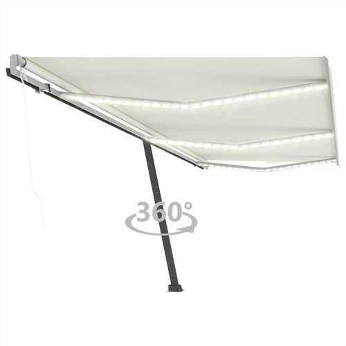 Create a lovely and cool place in your outdoor spaces with this retractable awning! This outdoor awning is built with a rust-resistant powder-coated aluminium frame, making it lightweight yet sturdy. The freestanding awning's fabric is made of high-density polyester with PU coating, UV-resistant and water-resistant. Additionally, the angle and height can be adjusted as per your preference. The sturdy base can be rotated 360 degrees, providing maximum adjustment needs. You can easily open and retract the automatic retractable awning with the included remote control. Also, the long hand crank can control the patio awning smoothly. It is also equipped with a wind sensor that can close your awning automatically on windy days. What's more, the solar-powered LED lights provide energy-saving lighting at night.