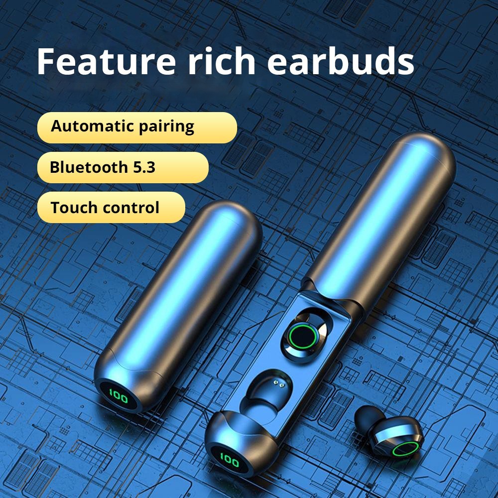 | Specification | Bluetooth Chip: Jerry 6983D2 Bluetooth Version: 5.3 Speaker: φ8mm Shutdown Standby Time: about 180 days Headphone Capacity: 45mAh Charging Case Capacity: 200mAh Music Time: 5-6 hours Call Time: 5-6 hours Headphone Charging Time: 40mins Case Charging Time: 1 hour Charging Interface: Micro Charging Voltage: DC 5V/1A Transmission Distance: 10 meters |