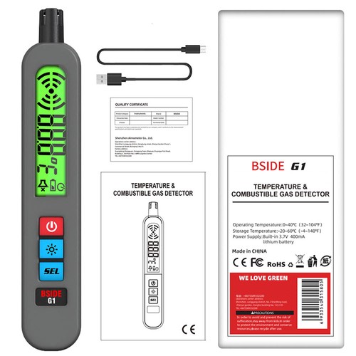 | General | Brand: BSIDE Type: Combustible Gases Leak Detector Model: G1 Color: Grey |