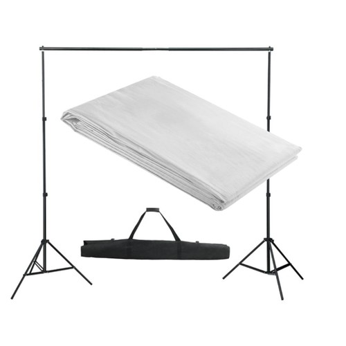 With this complete background system you can do whatever your imagination comes up with as a photographer, using it in the studio or on location. The lightweight system is easily and quickly built up and made of aluminium. One white cotton backdrop is included in this system. The system can also be used in combination with other backdrops and/or paper rolls. This flexible background system is suitable for portrait photography, commercial photography and table-top photography. The background has a maximum width of 300 cm and the height can vary between 75 to 210 cm. If you wish to use the system on location, this should not pose any problems. It is easily unassembled and assembled very quickly. Transportation is simple with the carrying bag of approximately 85 x 15 x 15 cm which is included in delivery.