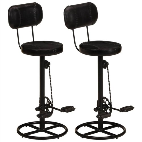 These soft and comfortable real leather bar stools are designed uniquely with bicycle pedals as footrests. They look great in restaurants, bars, and even in your hallway, living room, and dining room. The upholstered goat leather is soft to the touch and makes the stool extremely durable. The padding offers a comfortable seating experience, while the solid iron frame makes the stools stable and durable. The bicycle pedal footrests with the chain add a cool, industrial touch to the chair. Additionally, the backrests also add extra seating comfort for the stools.