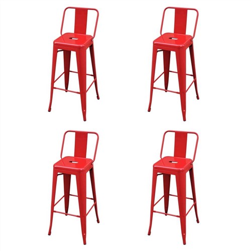 This 4-piece bar stool set, featuring a neat and simple design, will surely bring you seating comfort. The immaculate bar stools speak for themselves regardless of style, comfort or minimalism which are all key ingredients to seek for perfection. The stylish and simple steel structure delivers high sturdiness whilst the built-in footrests on all sides add additional seating enjoyment. Thanks to the modern design, this quality bar stool set will adapt to any home decor. Impress your friends at the next home party! Delivery includes 4 bar stools.
