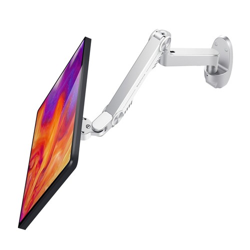 It mounts easily to the wall. With the gas spring arm the monitor will freely change positions and angles, no tools required.
