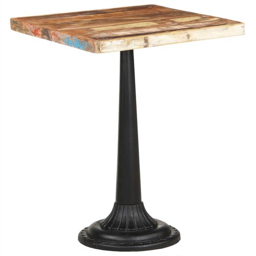 Add a touch of romantic atmosphere with this wooden bistro table! The tabletop is made of solid reclaimed wood that sourced from joists, floors and support beams from old demolished buildings. So, it can consist of different types of wood like pine, teak, oak, mango wood, acacia, etc. This also means the reclaimed wood retains the characteristics of these types of wood. Reclaimed wood is already aged, weathered and dried, so it doesn't shrink or bend. Additionally, the cast iron base provides stability and sturdiness for it. This dinner table even serves as a table to place your drink or any other necessity you need close at hand. Important note: Colours and grains vary from piece to piece, making each piece unique. The delivery is random as well.