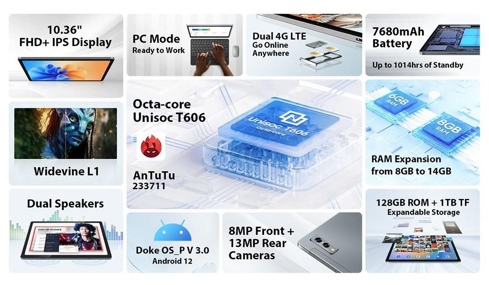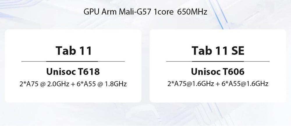 | General | Brand: Blackview Model: Tab 11 SE OS: Android 12 CPU: Octa-core Unisoc T606 Graphics Chip: Arm Mali-G57 1core @ 650MHz |