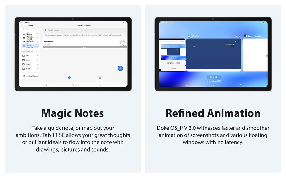 Unlike Tab 11 powered by Doke OS_P 2.0 on Android 11, Tab 11 SE powered by Doke OS_P V 3.0 on Android 12 runs more smoothly and responds more quickly.