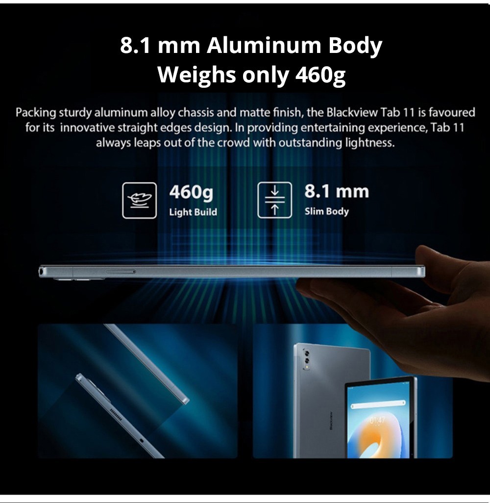 | General | Brand: Blackview Model: Tab 11 OS: Android 11 CPU: Unisoc UMS512T(T618) Graphics chip: Mali TM -G52 3EE 2-Core Up to 850MHz |